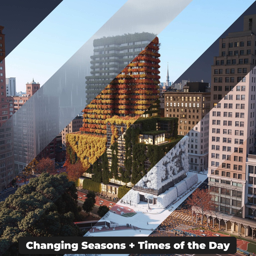 We begin with an introduction to the fundamentals—checkpoint models, latent space, VAEs, and prompt structures—so that participants gain a deeper understanding of how ComfyUI operates beneath the interface. From there, the workflow unfolds in three stages. The first is the image stage, where participants will use ControlNet modules such as Depth and Canny to guide the AI in generating design iterations that respond to time, season, and material conditions. Flux tools will then be applied for style transfer, inpainting, and upscaling to refine the outputs into coherent, detailed visuals.