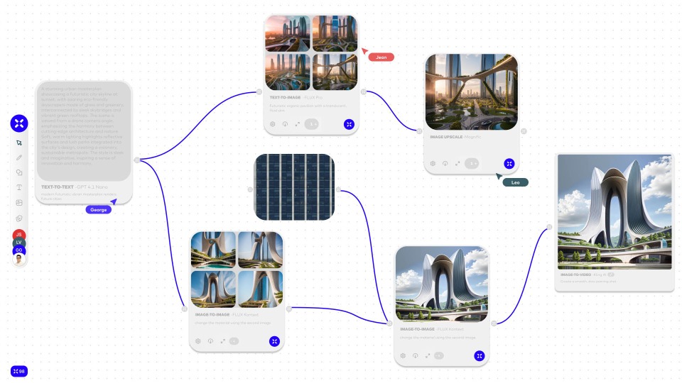 You’ll create a visual journey from AI-generated ideation to cinematic video and volumetric form, all compiled on an interactive xFigura board.
