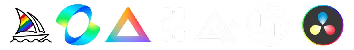 Software Midjourney, Kling, Magnific, Krea, Flux Kontext, Chat GPT, Da Vinci Resolve